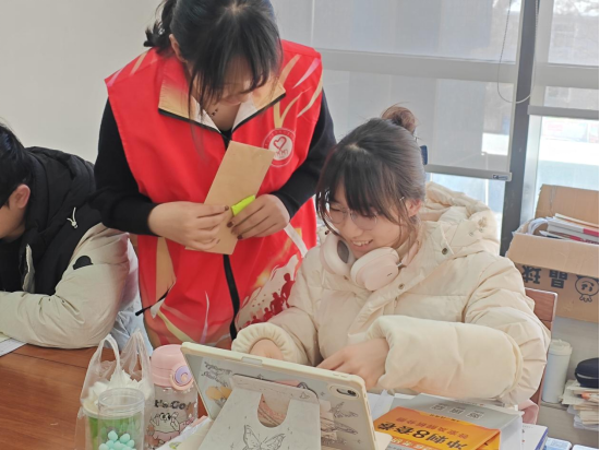 活动当日,志愿者们化身 “暖心信使”,将一封封承载着学弟学妹真挚心意的书信,悄悄送到备考学长学姐手中。每一封信笺都饱含深情:或是精心雕琢的加油诗句,字里行间满是昂扬斗志;或是娓娓道来的暖心散文,字句温柔舒缓备考压力。收到书信的学长学姐们起初略带惊讶,随即被字里行间的真诚打动,脸上绽放出温暖的笑容,他们轻声向志愿者道谢,眼眸中满是被鼓舞后的坚定与喜悦。这些薄薄的信笺仿佛拥有神奇的力量,在寒冬时节化作跃动的火焰,燃烧着希望与温情,而 “一‘研’为定” 的誓言,更成为考研学子们勇闯难关、征服备考之路的坚定信念。