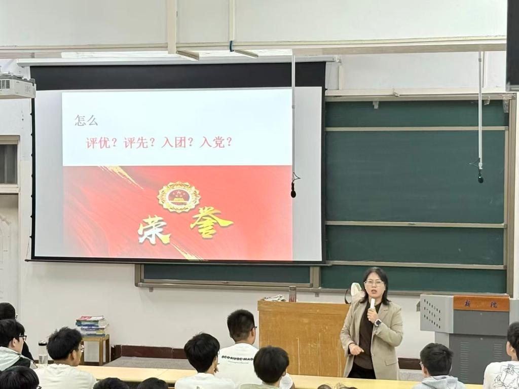 为帮助2025级新生适应大学生活,树立正确价值观,明确学业方向,提升综合素养。我院于9月18号晚19:30在A01-323和A01-324教室开展2025级新生入学教育活动。本次活动由院党委副书记郭桂花,院团委书记孟一,院学工办主任牛靖雯,各辅导员老师以及学生干部共同主讲,学院全体新生参会。