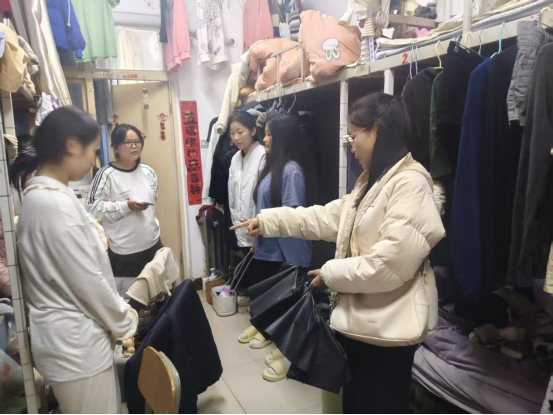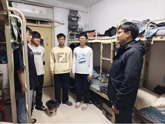 为深入贯彻落实立德树人根本任务,切实了解学生思想动态、学习生活状况,及时解决学生实际需求,近日,我院组织全体学工人员开展“下沉宿舍一线,心系学生成长”走访活动。在学院领导统一安排下,院分团委书记孟一、院学工办主任牛靖雯以及各辅导员老师分组深入学生宿舍,与同学们面对面交流、心贴心沟通,将育人关怀送到宿舍“最后一公里”。